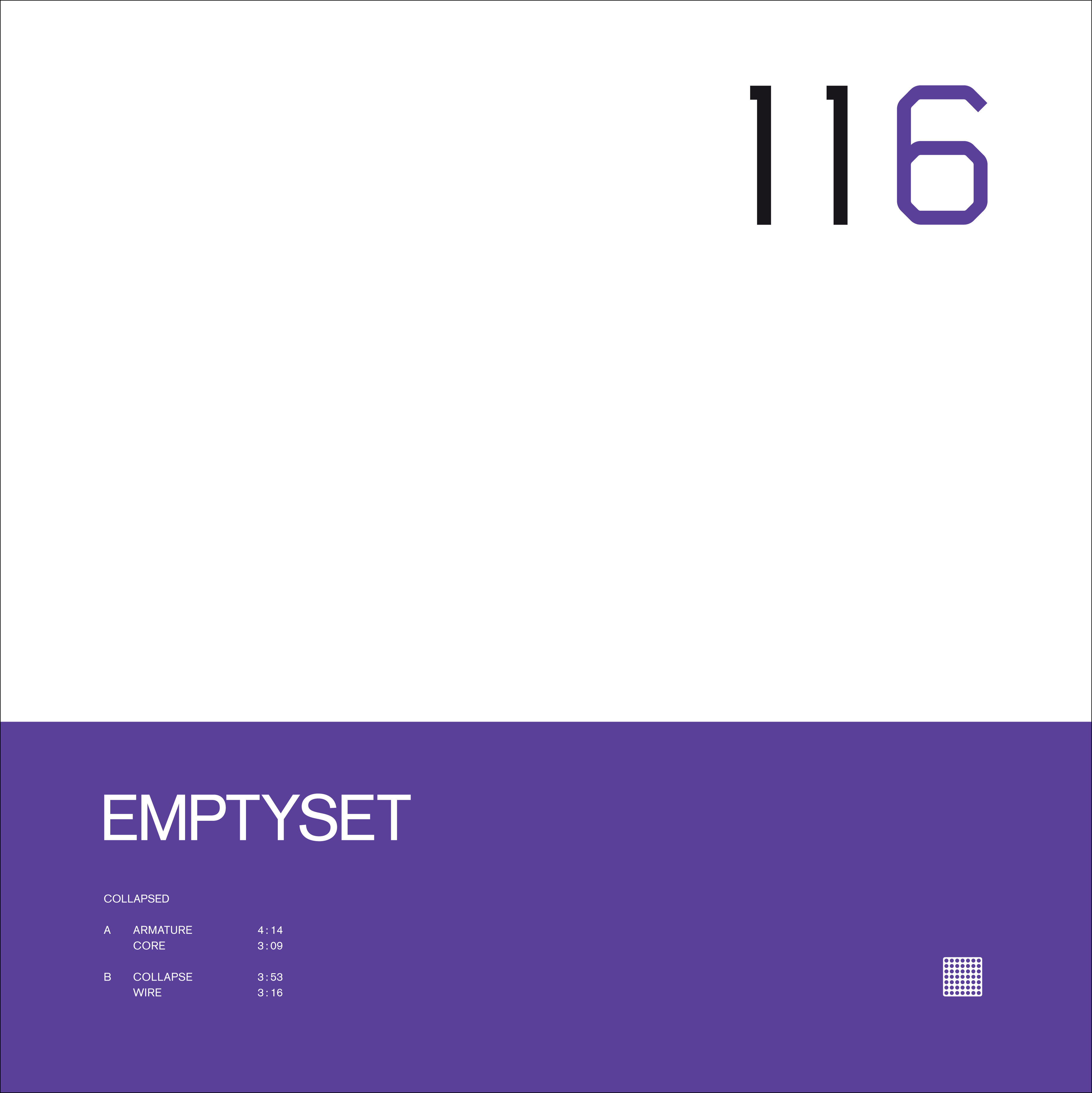 Bristolski dvojec Emptyset, v katerem že od leta 2005 skupaj ustvarjata James Ginzburg in Paul Purgas, se je z EP-jem Collapsed prvič podal v nedrje chemniške založbe Raster-Noton, ki ga je izdala kot šestega iz serije unun. Ko se je Emptyset z lanskoletnim albumom Demiurge odpravil iz artikuliranega techna bolj v levo in svoj izraz defragmentiral, je suvereno zakorakal v polje noisa, s pomočjo katerega je spretno osvežil svojo glasbo. Uvodni komad Armature je v okvirih estetike, ki jo gradita Bristolčana, precej mil začetek EP-ja, ki ga tvorijo 4 komadi. Že v drugem komadu Core Emptyset pokaže zobe - oziroma svoj pravi obraz.