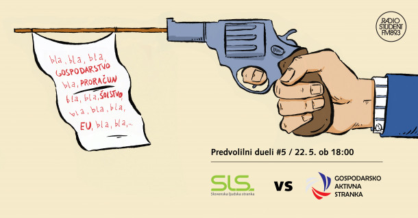 V studiu sta se v petem soočenju v RŠ duelu pomerila Primož Jelševar iz Slovenske ljudske stranke in Alojz Kobe iz Gospodarsko aktivne stranke. O križih in težavah šolskega sistema, begu možganov, krčenju javnega sektorja, delu po upokojitvi, neprofitnih stanovanjih.... Prisluhnite.