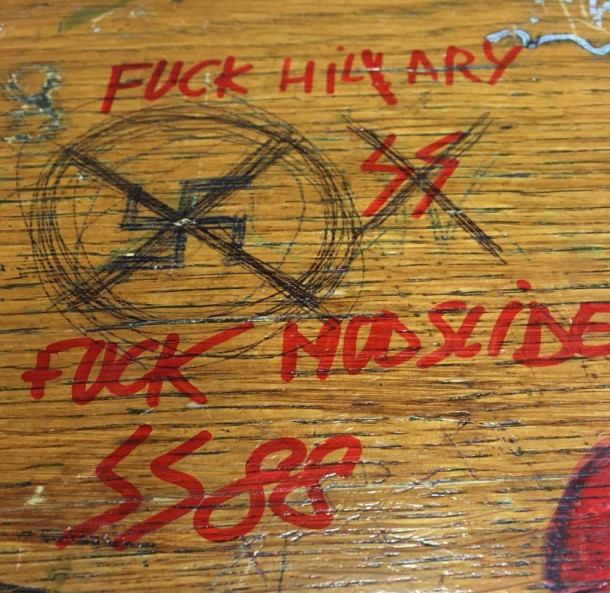 Na gimnaziji Bežigrad so se pred kratkim začele pojavljati podobe svastike v kombinaciji s sorodnim simbolom SS-a [esesa] in s številko 88, ki simbolizira pozdrav Heil Hitler. Napadeni so bili predvsem mize, stoli in ostalo pripravno leseno pohištvo, na katerega se da pisati s svinčniki in šestili. Vodstvo je sicer takoj ukrepalo in brez večje dileme zaukazalo odstranitev vseh nacističnih simbolov, medtem ko je med dijaki završalo.