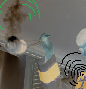 Šumečega skupaj z mrmranjem radiofoničnih. Nato je tehnik šel