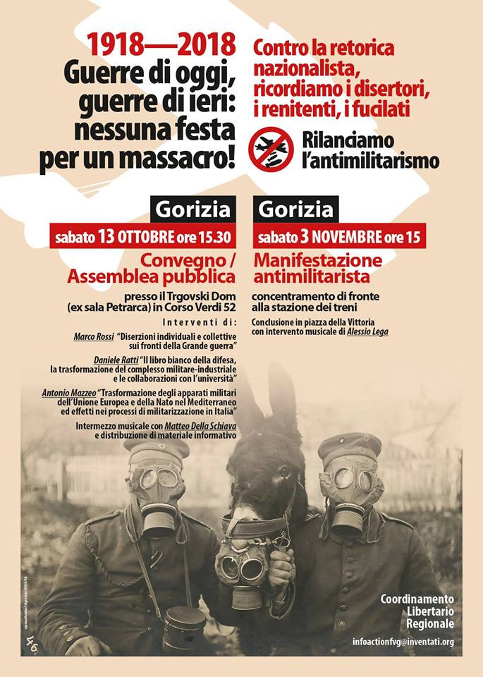 2. Dva protesta: Nobenega praznika za pokol, Gorica (IT), sobota 3.11.2018 ob 15h [zbirališče izpred železniške postaje