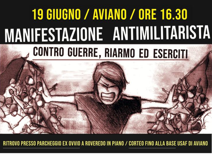 Pogovor s tovarišem iz Monflaconeja o prihajajočem protestu proti vojni, oboroževanju in vojski pred letalsko bazo ZDA v Avianu v severo-vzhodni Italiji.