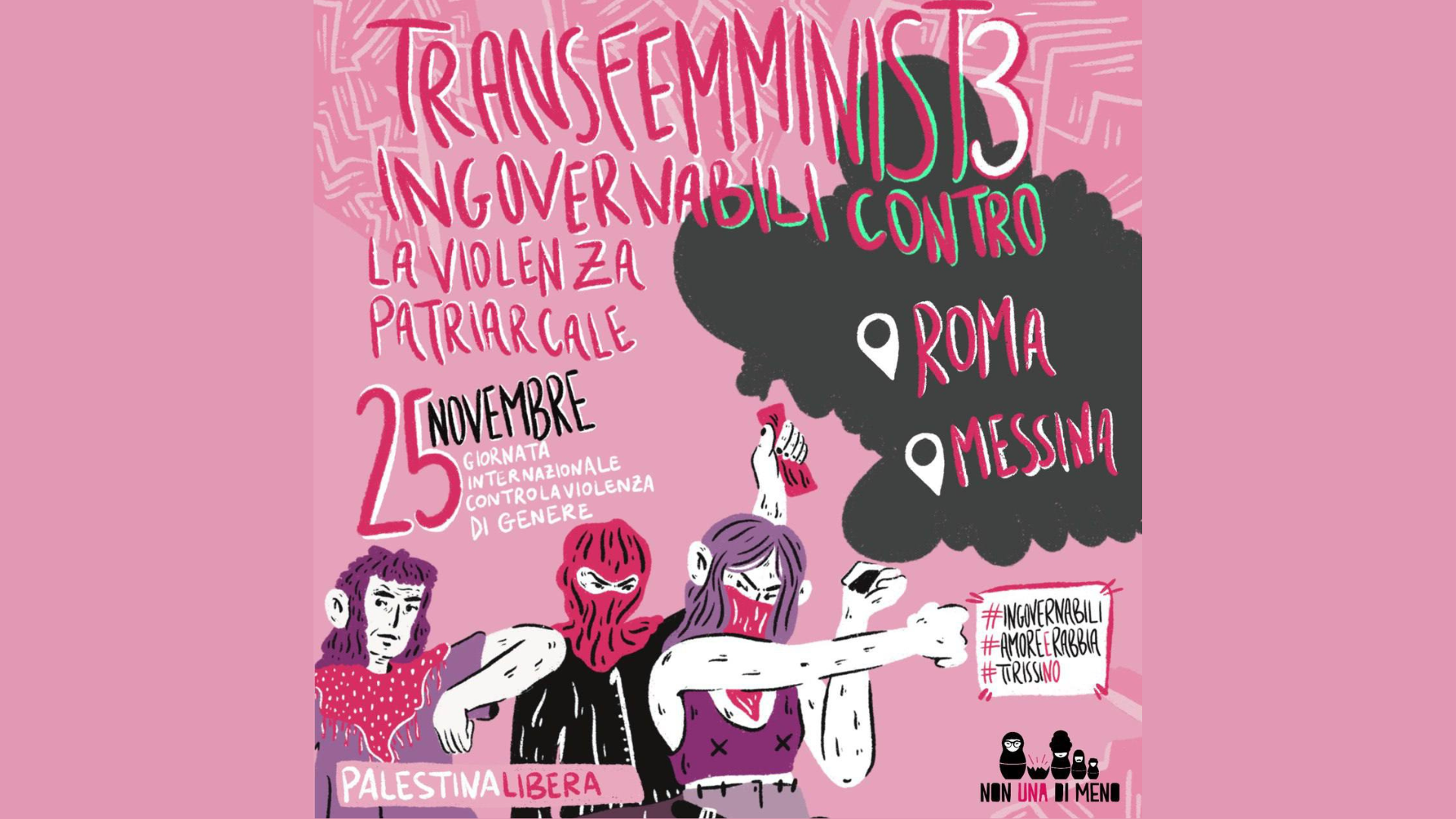 Tudi letos je bil 25. november dan številnih feminističnih protestov v raznih geografijah. V italiji so potekali protesti transfeminističnega gibanja Non una di meno – Niti ena manj. Že osmo leto zapored so se podale na ulice proti nasilju, ki je vsakodnevna realnost številnih. Pod geslom “Neukrotljive transfeministke proti patriarhalnemu nasilju” se je v Rimu in Messini ter nekaj drugih mestih zbralo preko pol miljona feministk iz cele italije.