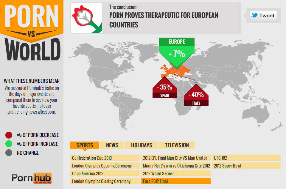 Danes o zanimivih statistikah, ki jih je v javnost dal PornHub in iskanju korelacije med pomembnimi svetovnimi dogodki ter masturbatornimi navadami.