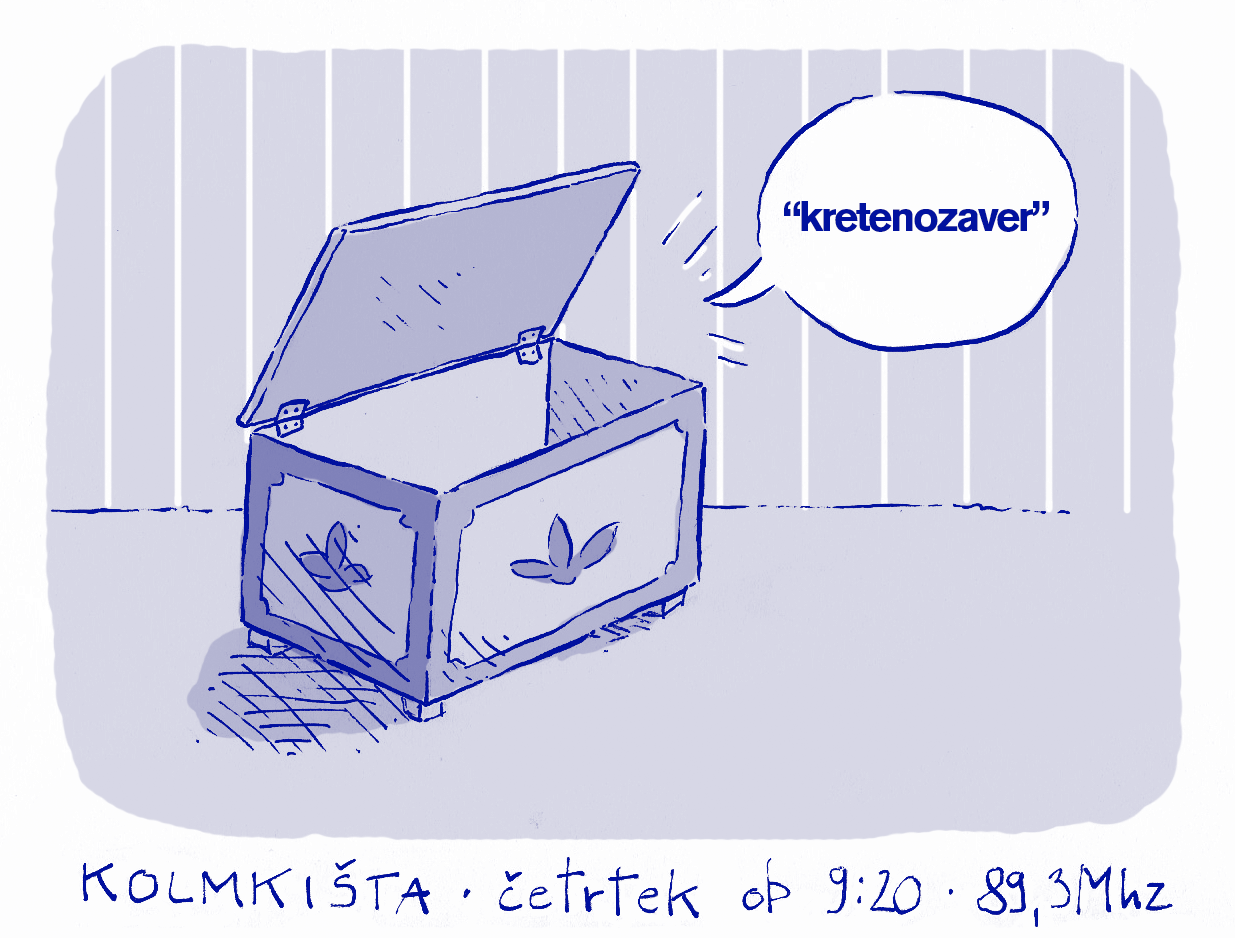 Kolmkišta 25. 10. 2018 – 9.20 Ana Marija Garafol Fotrovske special Audio file Predvajaj (21:54) skrinja pozabljenih besed Od kretenozavra do bonglna v posebni fotrovski ediciji Kolmkište, prvič. Prazen radio ne stoji pokonci! Podpri RŠ in omogoči produkcijo alternativnih, kritičnih in neodvisnih vsebin.Doniraj Dodaj komentar Komentiraj Ime Comment Leave this field blank Z objavo komentarja potrjujete, da se strinjate s pravili komentiranja.