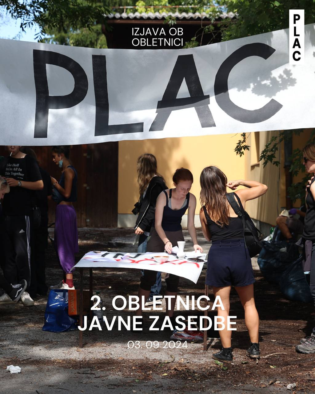 Izjava uporabnikov Participativne Ljubljanske Avtonomne Cone PLAC na novinarski konferenci ob drugi obletnici ustanovitve z zahtevami do vlade in SDH.