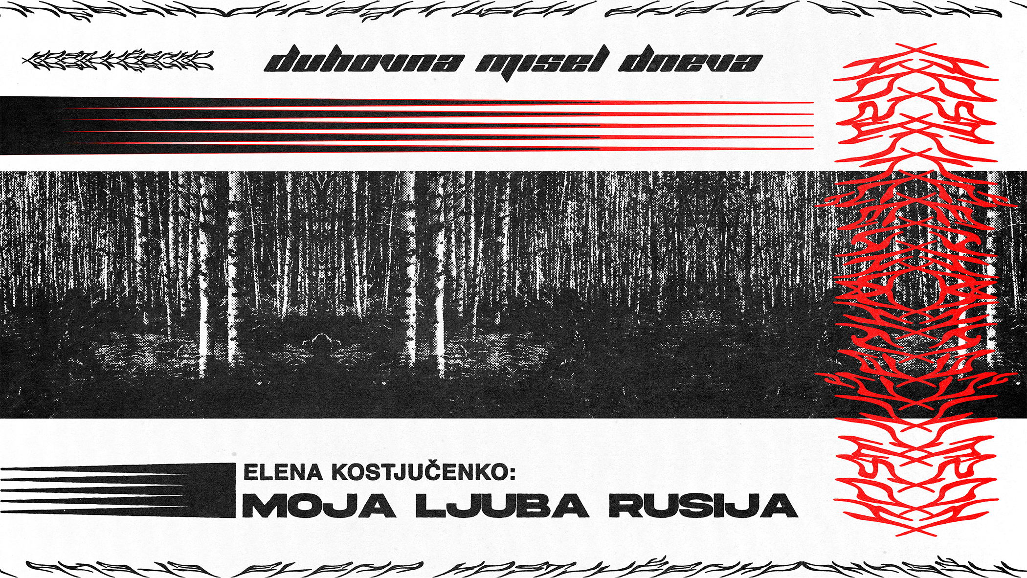 Z izborom ‒ ki sicer izpušča številne teme, o katerih je poročala Kostjučenko, denimo nesrečne usode novinarjev, mučno negotovost LGBT skupnosti, pozabljene neslovanske manjšine, razpadanje socialne države ‒ smo hoteli predstaviti perspektivo, ki nam manjka. Namesto Rusije kot najljubšega bav bava naših vojnih hujskačev ali Rusije ljubiteljev lika in dela Vladimirja Putina, smo iskali perspektivo Rusinje, ki je krutost svoje domovine doživela na lastni koži. Kostjučenko se v eseju Vojna, kako se je razraščala in razrasla, spominja, kako so se otroci igrali rdečearmejce in fašiste. Kakor še do nedavno pri nas, tudi na njihovem blokovskem dvorišču nihče ni želel biti fašist.