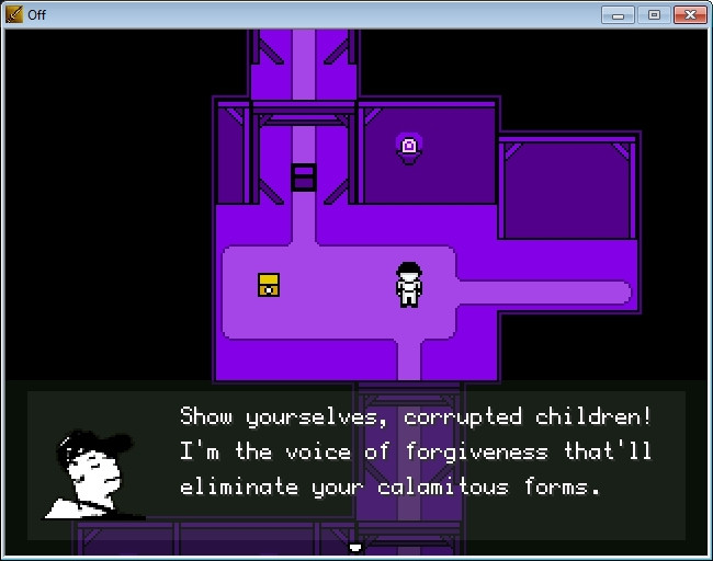 OFF je zastonjska indie igra, pri kateri lahko potegnemo nekatere vzporednice z Yume Nikki, o kateri smo v preteklosti v Pritiskavcu že govorili. Predvsem sta si igri podobni glede poglobljenega igralnega vzdušja, ki ga ustvari nadrealistično okolje v kombinaciji z morbidnimi in skrivenčenimi liki. OFF je malce starejši primerek neodvisne proizvodnje, ki je zalet dobila z občo povezanostjo svetovnega spleta. Programska orodja, kot je RPG maker, ki so na voljo vsakomur, tudi amaterskim razvijalcem, omogočajo ustvarjanje izdelkov v neovirani lastni režiji. OFF si je kultni status pridobil že kmalu po tem, ko ga je leta 2007 francoski razvijalec Mortis Ghost izdal sprva v francoščini, tri leta pozneje pa so oboževalci original prevedli še v angleščino. Vse odtlej v spletnih prostranstvih velja za lep primerek pripovedništva, ki je zgodbovno sicer nejasen, a prav zato bogat zaklad za vse mogoče interpretacijske tehnike. Je vir premnogih nesoglasij, tako glede same tematike kot razlage dogajanja.