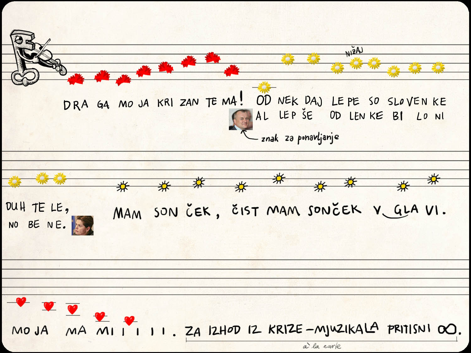Risanka 8. 3. 2013 – 12.00 Rok Kušlan Ne žena, ne mater, ne bab ... pesem žensk naj se razlega prek sveta! Audio file Predvajaj (1:07:14) Vir: Lastni vir JUBILEJNI 3. M U Z I K A L (tudi 182. RISANKA) RADIA ŠTUDENT Praznujmo! Vodite zlate prste gospe profesor po klavirju Muzikala Radia Študent! Oglejte si tudi, kaj smo počeli v preteklih 181 oddajah! Dodaj komentar Komentiraj Ime Comment Leave this field blank Z objavo komentarja potrjujete, da se strinjate s pravili komentiranja.