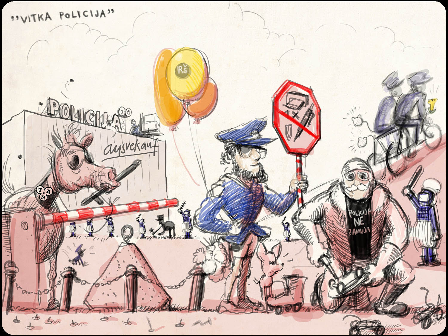 Ni zgolj RŠ tisti, ki mu zmanjkuje denarja. Tudi naši varuhi reda se morajo soočati z zategovanjem pasu, saj jim država vztrajno niža sredstva. Posledica je, da Policija nima niti več za gume, registracijo in bencin, NPU pa je pred kratkim ojačal svoj arzenal tehnoloških priodobitev s šestimi karticami Urbana. Ker vemop, da je potrebno varčevati na vsakem koraku, bomo tokrat narisali prenovljeno, cenejšo in času ustrezno Policijo. Našo Policijo!