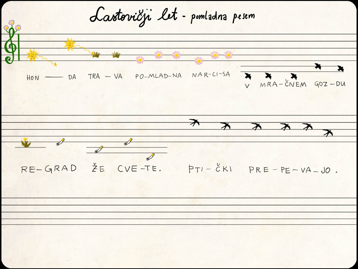 Že prejšnji teden bi bil čas za pesem pomladi, a kaj ko pomladi ni bilo! Zdaj pa končno je in z njo tudi 4. muzikal! V njem bo gospa profesor po vaših notah zaigrala prav to, PESEM POMLADI!