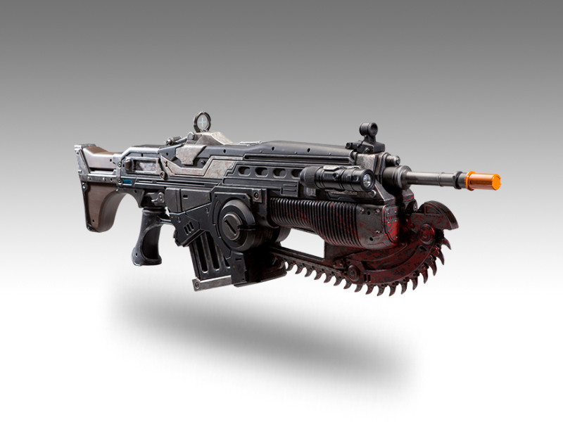 ''The Lancer is the iconic assault rifle. It's a powerful weapon, dealing fairly high damage at all ranges, with decent accuracy and a large ammo capacity. As with previous games, the Lancer has a chainsaw on it, that can be revved up and used to instantly kill most small to medium sized enemies.''