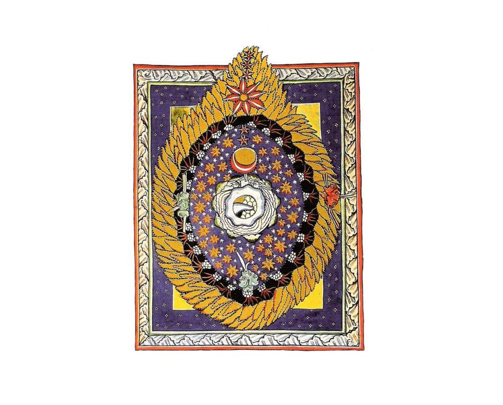*Na naslovnici je Hildegardina upodobitev vesolja, circa 1165