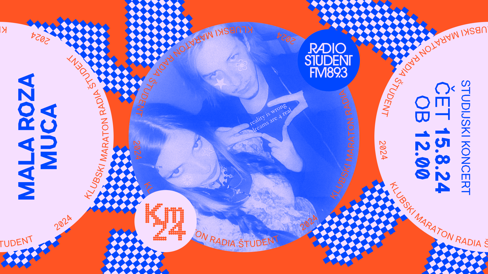 Na Klubski maraton 2024 prihaja virtualni hiperrealist v treh dimenzijah, mala roza muca. V četrtek, 15. avgusta, ob 12. uri v živo iz studiev Radia Študent, v etru na 89,3 MHz in v živem videoprenosu!