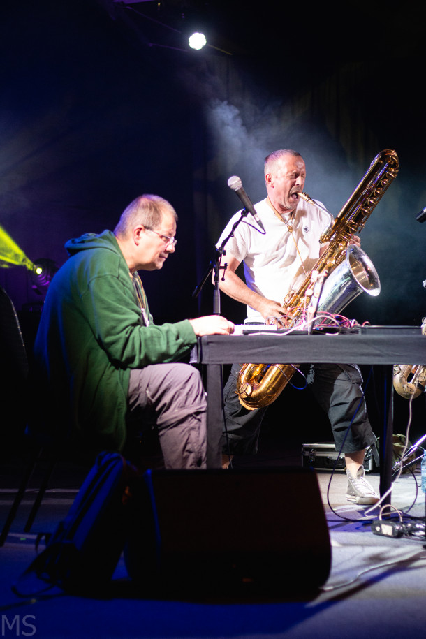 Padajočo temperaturo ozračja, ki je bila edini zares moteči element vse tri festivalske dni, je v soboto do stropa velikega prireditvenega šotora dvignil visokooktanski, energijsko nabriti kvartet Koma Saxo 4, žal brez tretjega saksofonista Mikke Innanena. Ubijalska ritem sekcija v navezi Petter Eldh na kontrabasu in Lukas König na bobnih, ki je tokrat nadomeščal Christiana Lillingerja, je neizprosno zarezala v noč in redkokoga pustila ravnodušnega. Lukasa Königa smo imeli priložnost videti tudi prejšnji večer v hipertenzičnem triu Mopcup in svoje delo je v obeh primerih opravil briljantno, z veliko dodane vrednosti obema zasedbama. Prav zaradi njegovega močnega impulzivnega stakata so Koma Saxo 4 zveneli dosti bolj udarno, kot zvenijo na svojem albumu. Zvočni bravuri obeh tenorskih saksofonistov Otisa Sandsjöja in Jonasa Kullhammarja sta se mojstrsko prepletali tako v bolj improviziranih delih kot v čvrstejših odsekih daljših skladb. Brez veliko modrovanja lahko zaključimo, da so bili Koma Saxo 4 odlični in so presegli vsa pričakovanja.
