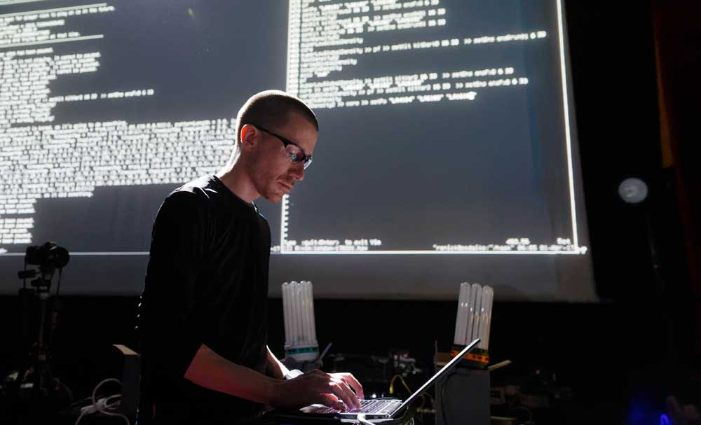 »Algorave is made from "sounds wholly or predominantly characterised by the emission of a succession of repetitive conditionals". These days just about all electronic music is made using software, but with artificial barriers between the people creating the software algorithms and the people making the music. Using systems built for creating algorithmic music and visuals, such as IXI Lang, puredata, Max/MSP, SuperCollider, Extempore, Fluxus, TidalCycles, Gibber, Sonic Pi, FoxDot and Cyril these barriers are broken down, and musicians are able to compose and work live with their music as algorithms.«