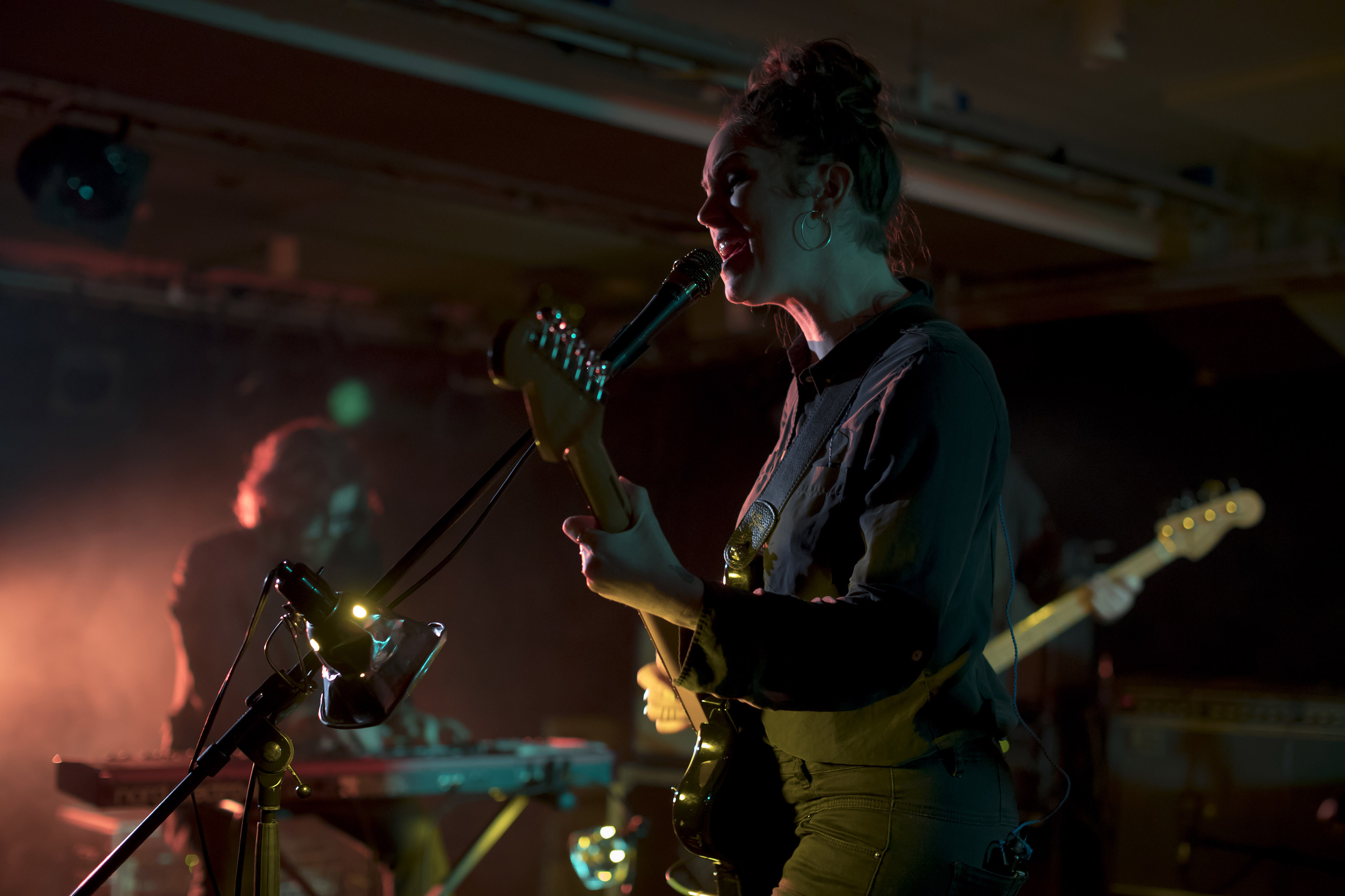 Emma Ruth Rundle je svoj nastop otvorila z dvema skladbama, ki ju je izvedla sama z akustično kitaro. Zvok njenega inštrumenta, speljan skozi efekte, kot so reverb in delay, je bil na trenutke zelo umazan. Predvsem ob delih, ko je Emma na strune udarjala močneje, smo bili deležni precej kaotične zvočne slike, ki pa se je umirjala, ko se je izvajalka vračala k višjim in tišje odigranim tonom. Po dveh skladbah je na oder povabila še bend, ki so ga sestavljali člani zasedbe Jaye Jayle. Evan Patterson je tudi tokrat igral kitaro, prispeval pa je tudi back vokale. Sestrstvo oziroma bratstvo teh projektov oziroma bendov je utelešeno tudi na splitu The Time Between Us, ki je izšel letos.