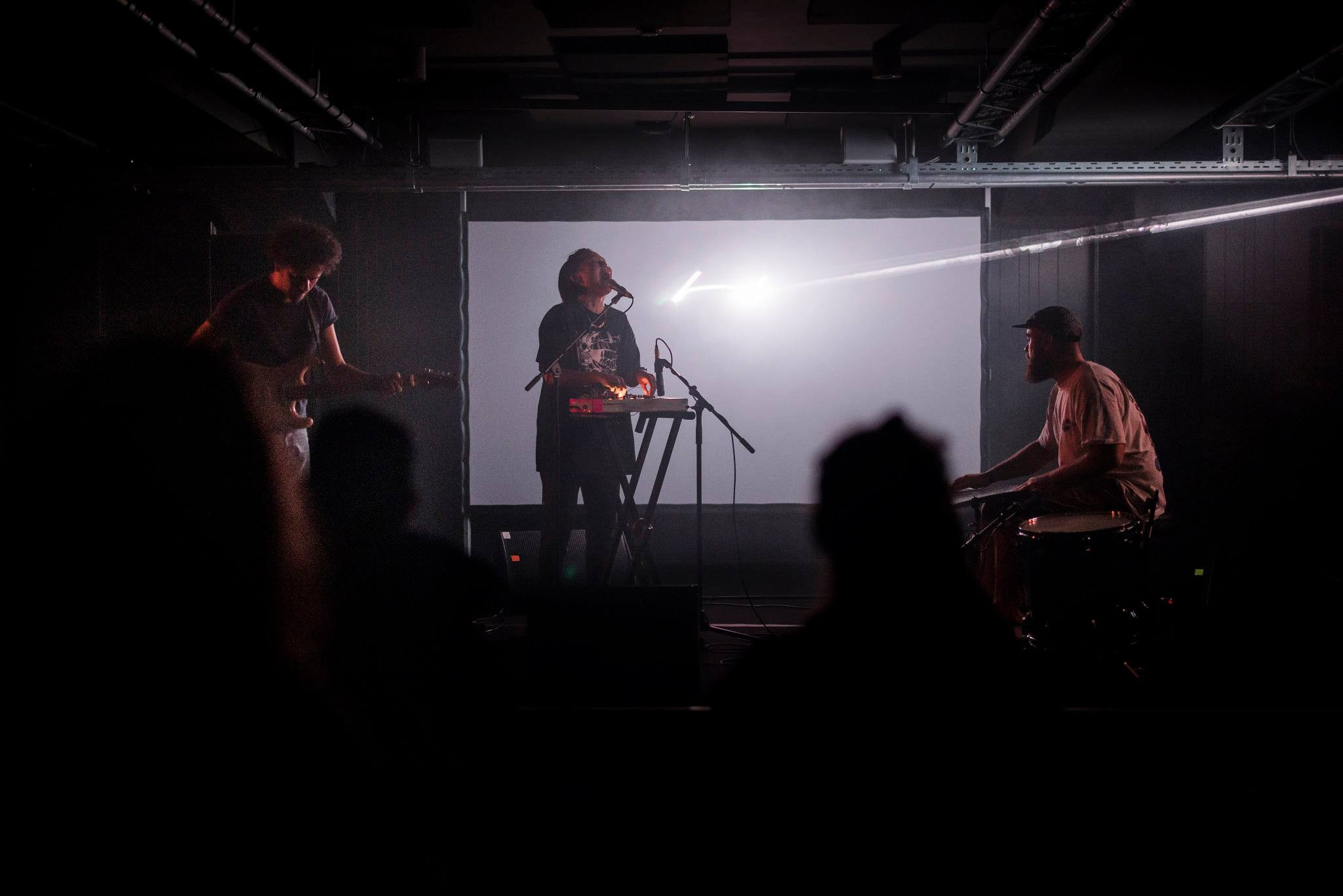 Mednarodni trio tvori v Berlinu živeča Američanka Audrey Chen, ki z glasom ustvarja vokalne zvočne efekte, pri tem uporablja izrazne forme, kot sta kričanje in klokotanje, ob tem pa še upravlja z analogno elektroniko. Ob Chen sta v triu Parižan Julien Desprez z električno kitaro ter Dunajčan Lukas König za bobni in sintetizatorji. Tokrat je zasedbo spremljala še laserska projekcija, ki je barve in prikazane geometrijske podobe spreminjala v ritmu nojza, s čimer je pripomogla h kreiranju zmedenosti, hkrati pa fokusiranosti in hipnotiziranosti. Vizualije so predvsem zaradi barvne palete, ki se je spreminjala v ritmu muzike, prevzele vlogo dodatnega glasbila. Bolj masivne momente so spremljale tople barve, kot je rdeča, ter zgoščeni in hitri geometrijski liki, bolj redke umirjene glasbene momente pa minimalističen imidž.