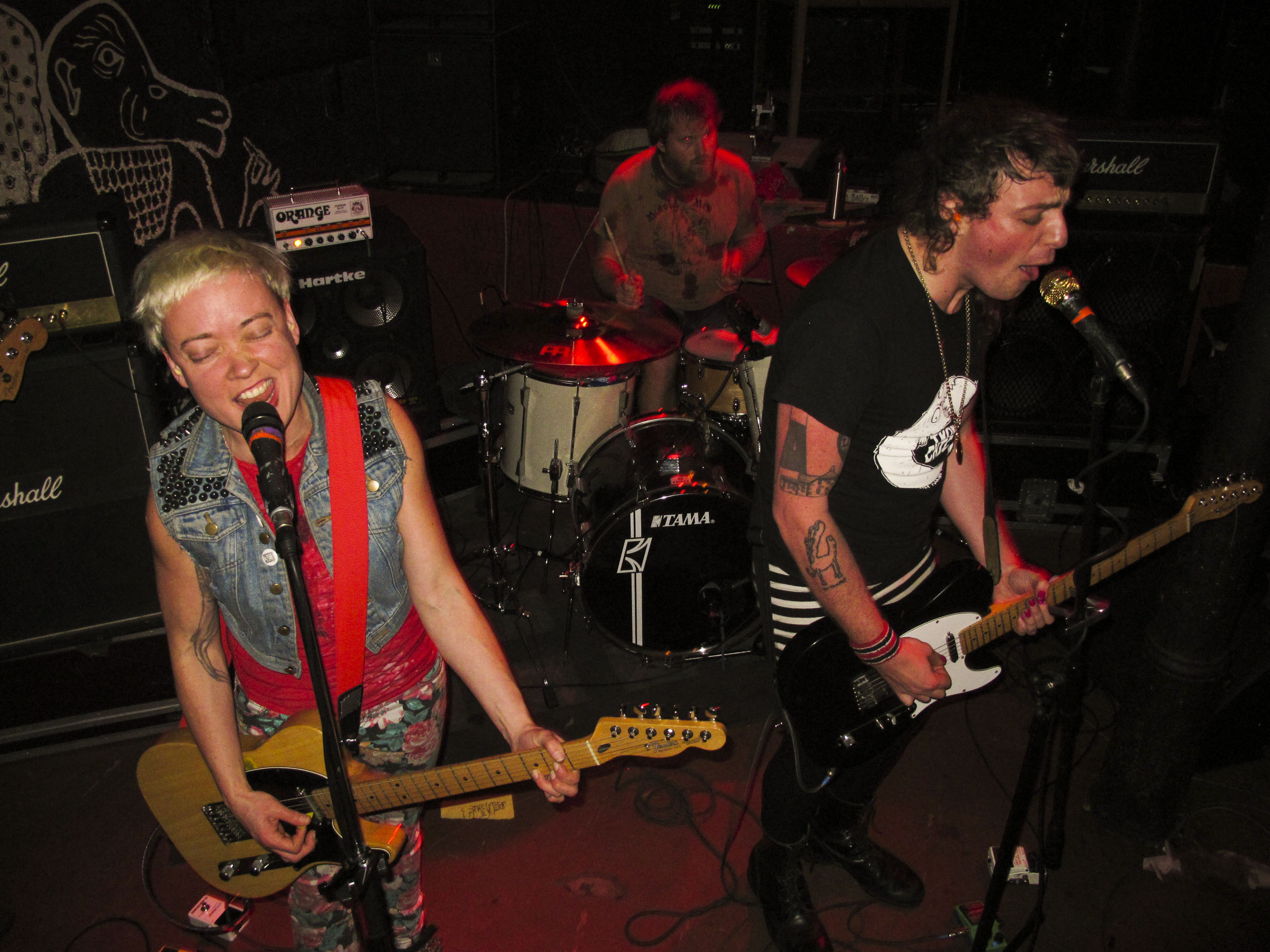 Dogjaw so predstavili mešanico temnejšega punk rocka, oplemenitenega s postpunkovskimi vzgibi in predstavljenega v neobrušeni, surovi različici. Z basistko in kitaristko, ki prispevata vokale, ter bobnarjem se ne ustavljajo, drvijo med komadi in delujejo precej surovo. Še posebej, če stojite zraven njihovih ojačevalcev. Ni pa šlo samo za drvenje, saj je skupina poskrbela tudi za zanimive, počasnejše in tudi tehnično rahlo zahtevnejše preklope v pesmih. Svoj nastop so končali s pesmijo »Pain«, ki se s svojim basovskim začetkom in dvoglasnim petjem odlično stopnjuje v sonične zvočne širine in hitrejši ritem.