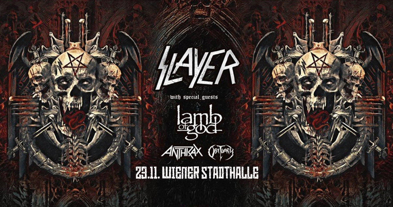 Sedemintrideset let je minilo od trenutka, ko je v Los Angelesu nastal thrash metal bend Slayer, ki so ga ustanovili vokalist/basist Tom Araya, kitarista Kerry King in Jeff Hanneman ter bobnar Dave Lombardo. Do danes so izdali dvanajst studijskih albumov, s svojo agresivnostjo, odličnim smislom za pisanje pesmi, pretresljivimi besedili in brezkompromisno držo, ki jih je uspešno vodila in držala na vrhu scene tudi v času, ko je metal recimo sredi devetdesetih bil na najnižji točki popularnosti, pa so in še veljajo za prave botre ekstremne scene, katerih vpliv je čutiti v vseh metalskih podzvrsteh. A tudi Slayer niso večni in so samo ljudje, tako da so se tudi oni odločili zaključiti svojo zgodbo v najboljši možni luči – in sodeč po videnem v petek na Dunaju v dvorani Wiener Stadthalle, se Slayer definitivno poslavljajo na vrhuncu.