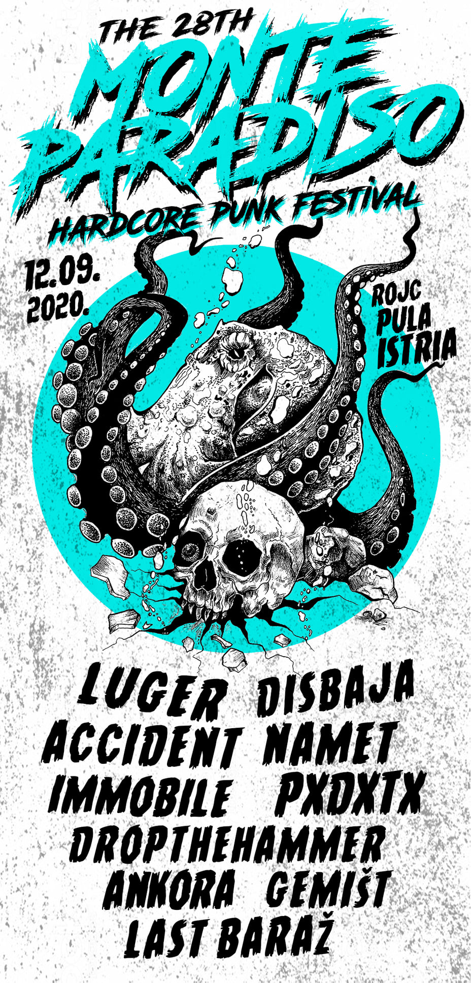 (sobota) 12. 9. Pula, DC Rojc – 28. Monte Paradiso HC Punk festival: Immobile, Namet, Accident, Dropthehammer, Last Baraž, Lüger, Disbaja, Ankora, PxDxTx, Gemišt;