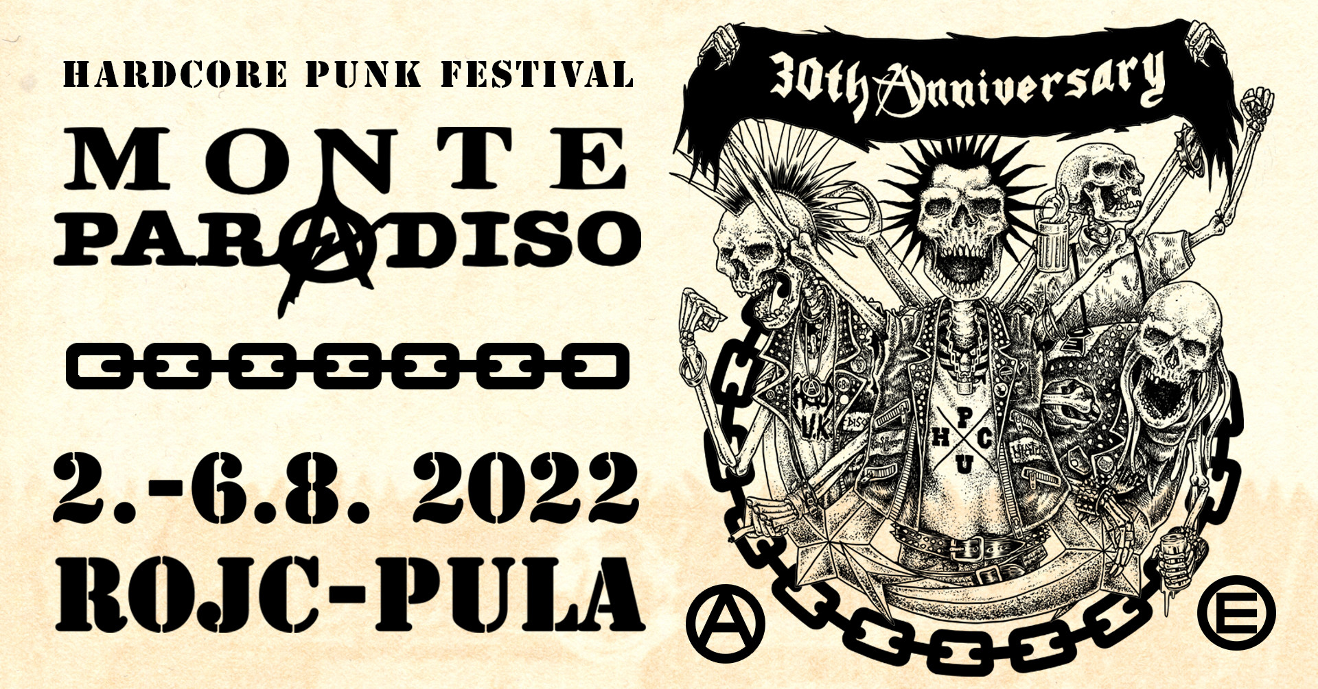 (petek) 5. 8. Pula, Rojc – 30. Monte Paradiso Festival: Bunkier (pl), The Truth (srb), Caloris Impact (a), Heihaizi (hr), Rat Cage (uk), Aktivna Propaganda (slo)