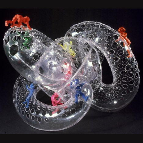 Vito Acconci (b. 1940) first became known for his performance and video art in the 1970s. Since then his work has developed in the direction of audio-visual installations. The nature of public space and the situation of art institutions inside their urban architectural environment comprise the current theme of his architectonic designs. In “Models for Tomorrow: Cologne” Acconci will show a selection of computer-animated models of public squares, interiors, and especially architectural structures, which are not only attractive jewels in urban structure, but also deal with the theme of the space in which the individual visitor acts. The DVD can be seen on a monitor reserved especially for the purpose in a commercial Internet café, the „Tele Café Köln–Am Dom.“ As a phenomenon, the Internet café is a typical post-public hybrid of private telecommunications and collective consumption of the same. Here, Acconci’s virtual work meets a post-public audience, parts of which are only present through the various communications channels in Cologne.