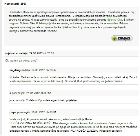 Verjetno je odveč izpostavljati naravo komentatorskega diskurza, dovolj bo, če potrdimo sum tistih, ki z njim niste seznanjeni, da gre za enega najslabših in najbolj populističnih diskurzov v domači javni sferi. Kar pa je mnogo bolj tragično, je dejstvo, da nam lahko ti diskurzi služijo kot relativno dobri modeli za ponazoritev celote javnega diskurza v Sloveniji. Vse glavne vloge so zavzete: levi in desni, beli in rdeči, komunisti, fašisti, klerikalci in neoliberalci; vsak zase in vsi skupaj oznanjajo, kaj je dobro in kaj zlo, kaj bi morali in česa ne smemo, predvsem pa, kdo je kriv. Naj bo tema nekega članka še tako obskurna in nepovezana z lokalnim političnim dogajanjem, nekdo bo opravil svojo državljansko dolžnost in potegnil absurdno vzporednico z Janšo ali »silami kontinuitete«. Tako dobro povzemajo generalno stanje javnega diskurza v Sloveniji, da se njihov bralec upravičeno zboji, da so ti komentarji tisti, ki upravljajo s tem diskurzom, in ne obratno.