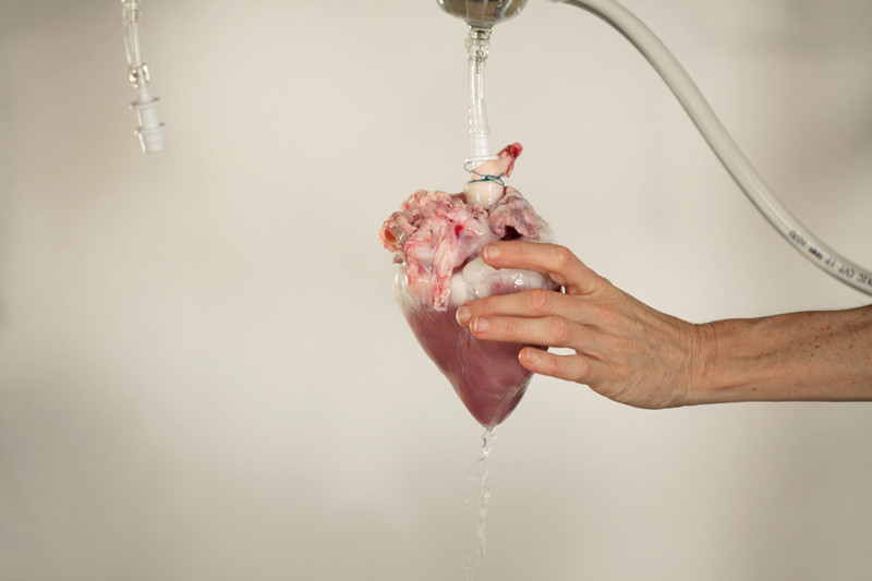 Ob dveh popoldne so bila tla Kapelice že absurdno zamazana s prašičjo krvjo. Ta je v curkih špricala iz velike osvetljene cevkaste instalacije, pod katero se je kopičilo nešteto medicinskih aparatur. V sredini je bilo vpeto prvo izmed dveh prašičjih src, ki sta iz klavnice prispeli v dobrih 4 minutah. S hitrimi gibi in vseprisotno tenzijo, ker reanimacija ni nujno vedno uspešna, sta umetnici s pomočjo ekipe Kapelice in biologa poskušali mrtvo srce iz kosa mesa obuditi nazaj v prvotno stanje. Po večkratni uporabi defibrilatorja in dozi adrenalina je v drugem poskusu prvo srce končno oživelo. Kri je še vedno špricala, kamere so objestno beležile ponovno rojstvo in v nekakšnem novonastalem mentalnem šoku ob popolni nepripravljenosti na tovrsten medicinski proces sredi galerijskega prostora je bil čas za odhod.