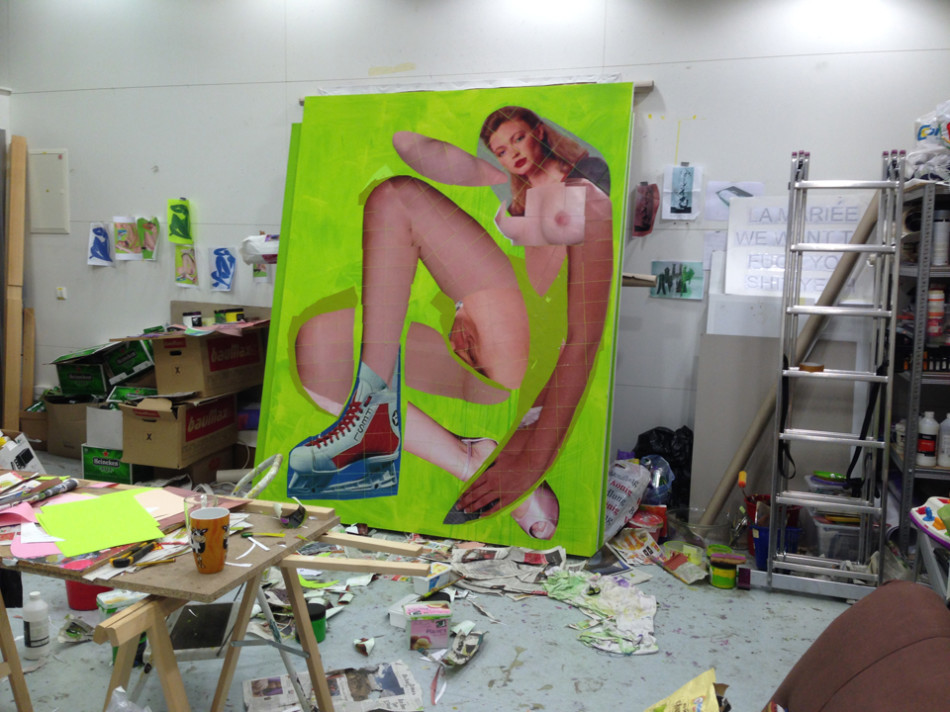 Razstava, postavljena v prostor Kulturnega centra Tobačna, vključuje štiri večja platna s tehniko izrezank in dve inštalaciji. Izrezanke oblikujejo sedeči ženski akt s prepletenimi nogami in dvignjeno roko, s čimer se v svoji drži neposredno referirajo na Matissovo serijo kolažiranih modrih aktov. Telo posledično tvori fragmentarni internetni material vidno razgaljenih anonimnih neznank na živo zelenemu ozadju platna.