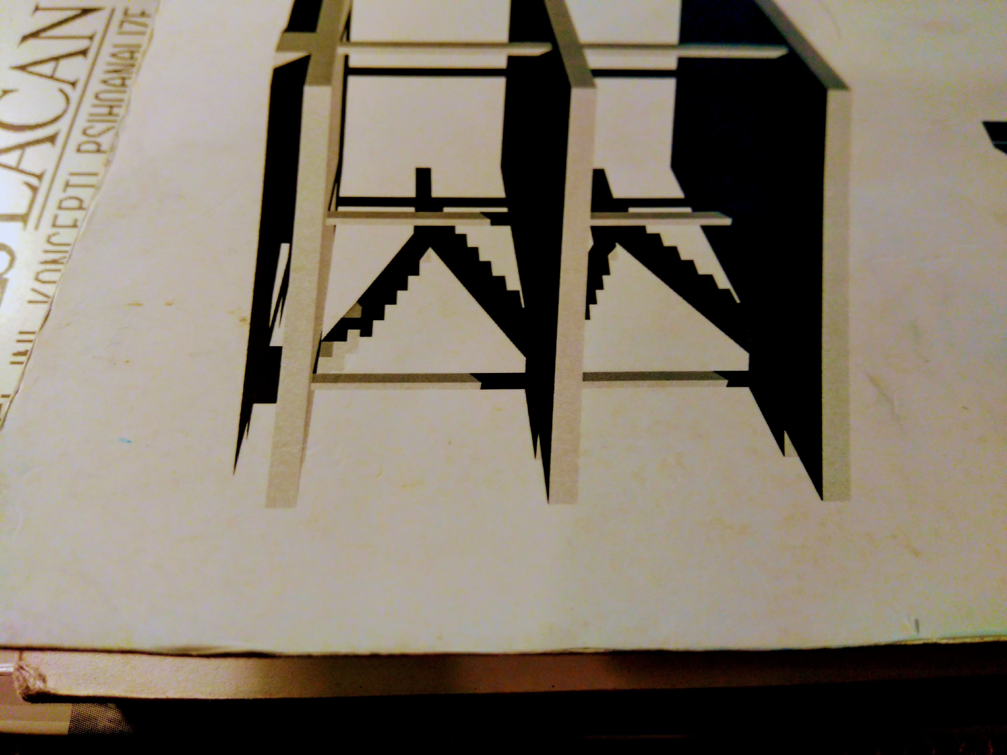 Tej hipotezi sledi najbrž ključna zastavitev knjige - vzporedba dveh pojmovnih trojic. Pojmovni tris sodobnega arhitekturnega teoretika Kennetha Framptona, ki ga tvorijo struktura, konstrukcija, tektonika ali drugače tehnološki, scenografski in tektonski objekt, se dotakne Lacanovih kategorij realno, simbolno in imaginarno, s čimer bi naj vrzeli v Framptonovi teoriji bilo mogoče zapolniti. Ob interpretaciji Framptona, da arhitektura ni niti tehnološki, torej gola uporabnost, niti scenografski objekt, torej reprezentacija drugega, je funkcija tektonskega objekta ravno v tem, da iz obojega naredi arhitekturni objekt, ki vsebuje oba modusa – ontološkega in reprezentacijskega.