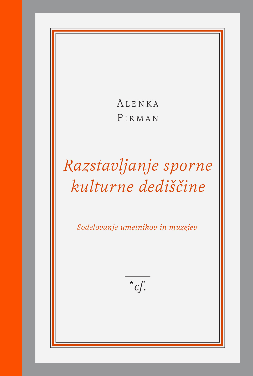 Pred nekaj meseci je pri založbi /*cf izšla študija umetnice in heritologinje Alenke Pirman Razstavljanje sporne kulturne dediščine: Sodelovanje umetnikov in muzejev. Kulturna dediščina ni nič danega, temveč je diskurzivno proizvedena, s tem pa nikoli ideološko nevtralna, saj ima v ozadju vselej strateške namene. Kot sporno pa avtorica razume tisto dediščino, glede katere obstajajo odkrita nesoglasja, zlasti tiste primere, ko se izpodbija doslej dominantno interpretacijo določenega dediščinskega artefakta. Pri razstavljanju sporne kulturne dediščine morajo muzeji – kot nacionalne institucije v službi nacije – upoštevati latentna ali očitna nesoglasja, kar – tako Pirman – kustosom predstavlja nemalo težav pri komunikaciji z občinstvom.