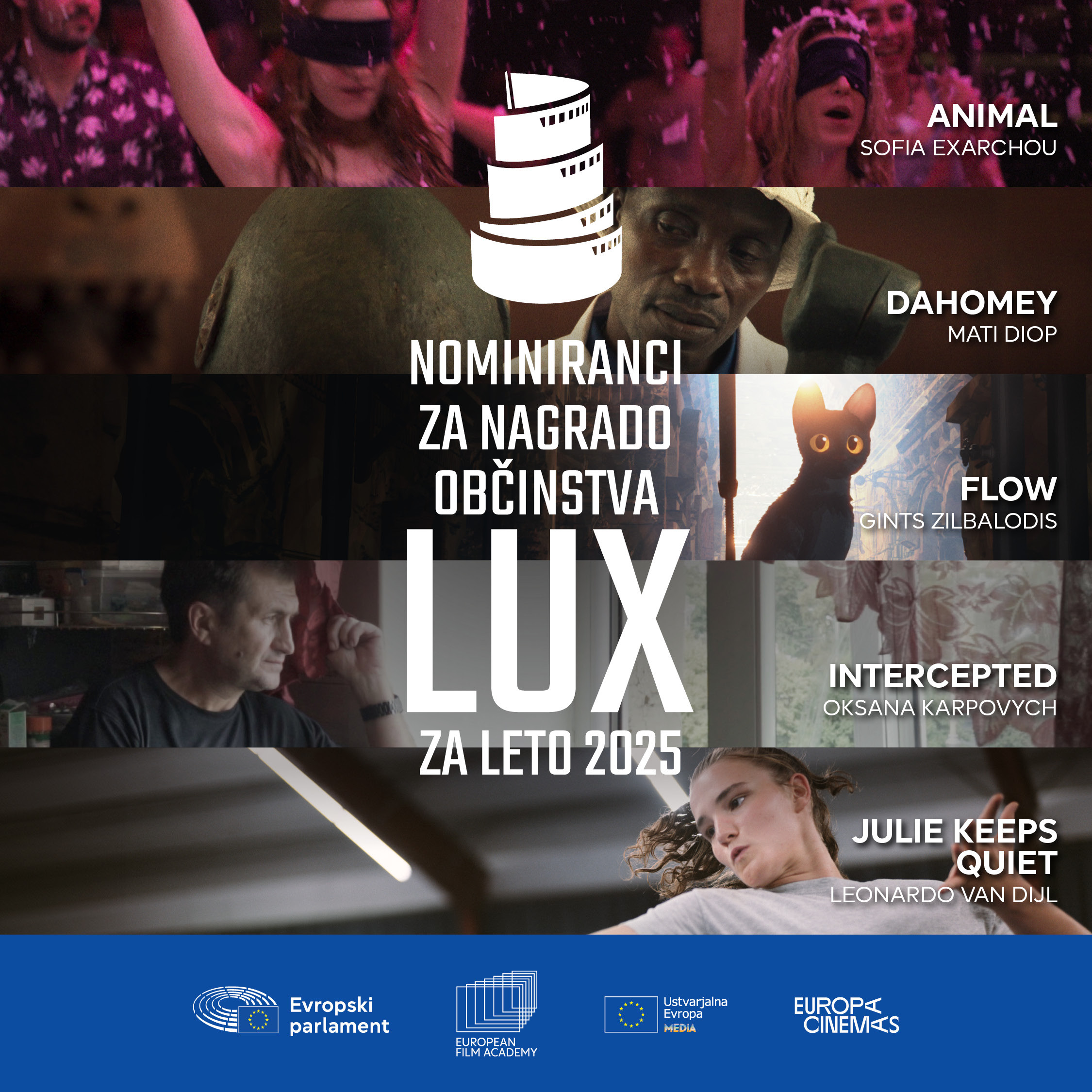 Leto je naokoli, prebuja se pomlad in morda se spominjate, kako ste se kakšno leto nazaj odpravili do Kinodvorove blagajne, da bi prevzeli vstopnico za Jesensko listje ali pa Sestre v savni in zanjo odšteli pičlih nič evrov. No, končno je napočil čas, da zopet narabutamo nekaj evropskih filmov! Med 2. in 9. aprilom bodo v Kinodvoru namreč potekale brezplačne projekcije letošnjih nominirancev za evropsko filmsko nagrado občinstva LUX, vstopnice pa bodo na Kinodvorovi blagajni na voljo od jutri naprej. Letos so v beri latvijski animirani film Valovanje, grški igrani film Animatorji, ukrajinski dokumentarec Prestreženi, belgijski igrani film Julie molči in francoski dokumentarni film Dahomej.