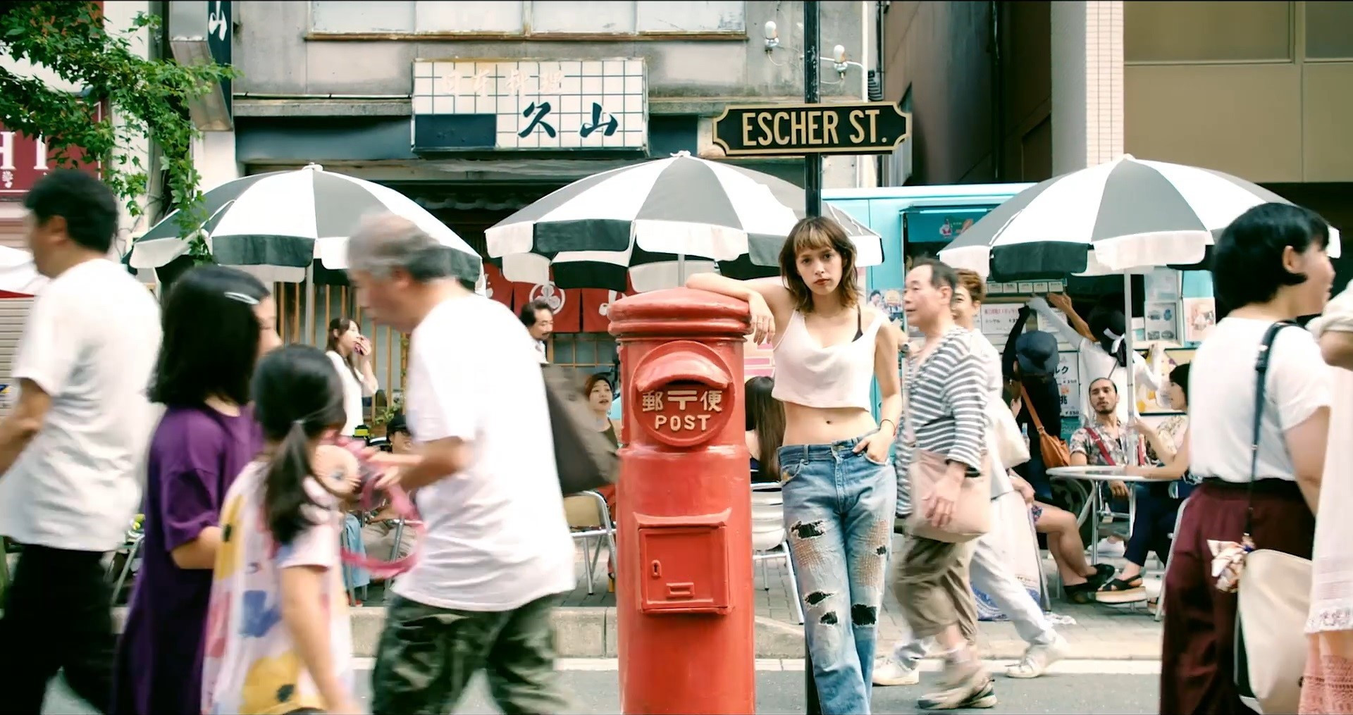 V jedru lanskoletnega filma Rdeči nabiralnik na ulici Escher japonskega filmskega eklektika Siona Sona stoji sprevrnitev razmerja med nepomembnim in izključenim filmskim ozadjem, ki ga tvorijo statisti, in glavno pripovedjo, v katero je vključena peščica glavnih in stranskih likov. Rdeč nabiralnik na ulici Escher bi lahko brali kot filmski poskus, ki skuša izraziti tišino, potrebno za delovanje vsakega konvencionalnega filma.