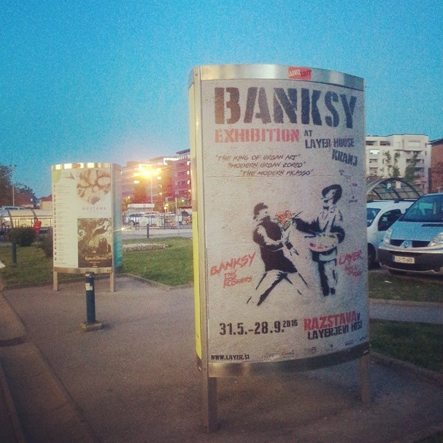 V Layerjevi hiši v Kranji pa bo na ogled razstava slovitega anonimnega grafiterja Banksya. Banksy je morda najbolj znan umetnik, njegovi ikonični grafiti se pojavljajo na marsikaterem perečem kraju. Od slovitega grafita v Gazi, do nedavnega v Begunskem getu v Calaisu v Franciji. Vsa vprašanja, ki se odpirajo pri vprašanju družbeno angažirane fotografije, se pri Banksyu vsaj v okviru njegovega odnosa do trga le še pomnožijo. S svojim delom opozarja na določeno problematiko, ampak grafit postane kulturni, da ne rečemo turistični landmark sam po sebi, grafit postane fokalna točka in ne situacija, ki jo nagovarja. Vse to se le še pomnoži pri Banksyevem verjetno ne tako prostovoljnemu vstopu v institucijo umetnostnega trga.