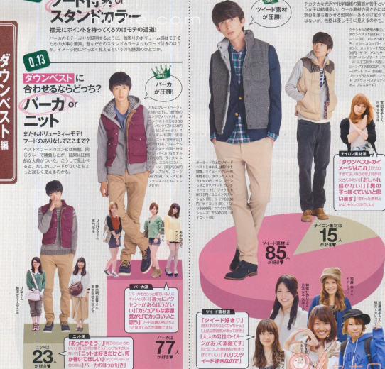 Prelistamo torej decembrsko številko japonske modne revije Street Jack, kjer nam na informativen in zabaven način bojo japonski mojstri casual oz. street stila dali obilico napotkov za nakup zimskih stvari. Stvari, je žal treba dodati, ki jih težko najdemo zunaj japonske, ampak vseeno, nam bo služilo vsaj kot nek smerokaz, s pomočjo katerega se bomo lažje odločali pri nakupih. And that's about it. Practical and a little boring, priznam.