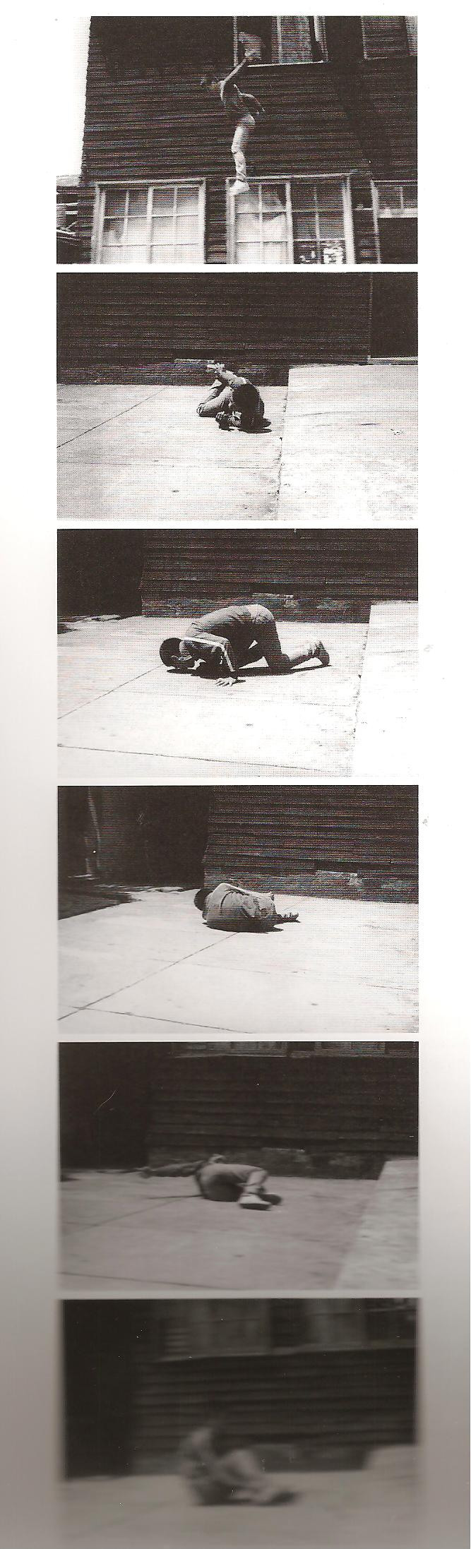 Tehching Hsieh se je v svojem »Skoku« pognal z drugega nadstropja, skoraj 5 metrov proti tlom, pri čemer si je ob pristanku na beton zlomil oba gležnja. Dogodek je skrbno dokumentiral s fotografskimi sekvencami in na 8 milimetrski film. Danes so ostale samo fotografije, film je Hsieh (Šej) na neki točki sam uničil.