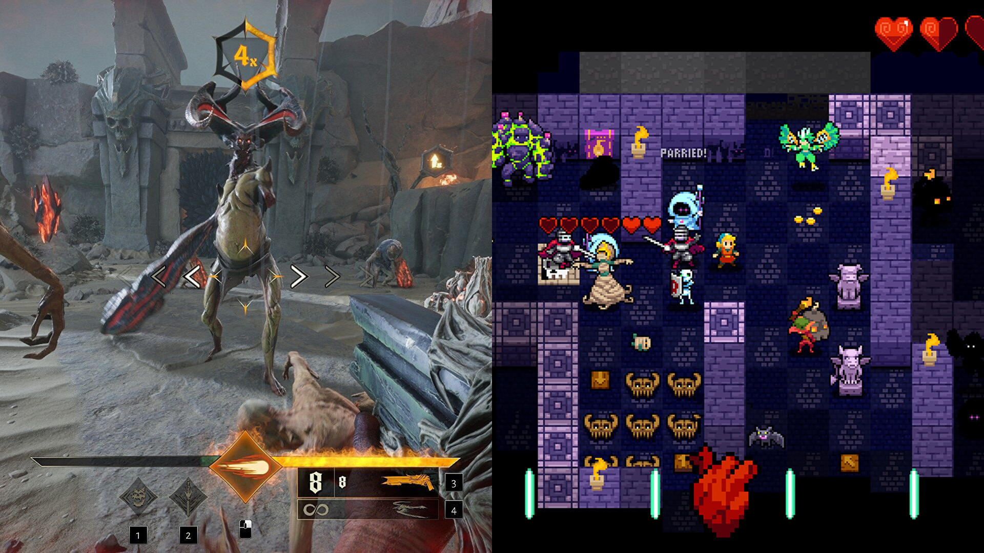 Tokrat bomo vsi štirje celo uro v taktu z nogo butali ob tla, pretekli mesec smo namreč preigravali Metal: Hellsinger in Crypt of the NecroDancer. Ritmični igri sta si podobni v tem, da sta z Guitar Herota in Dance Dance Revolution spretno odrezali glasbeni cepič ter z njim oplemenitili deblo nasilnejših akcijskih zvrsti.