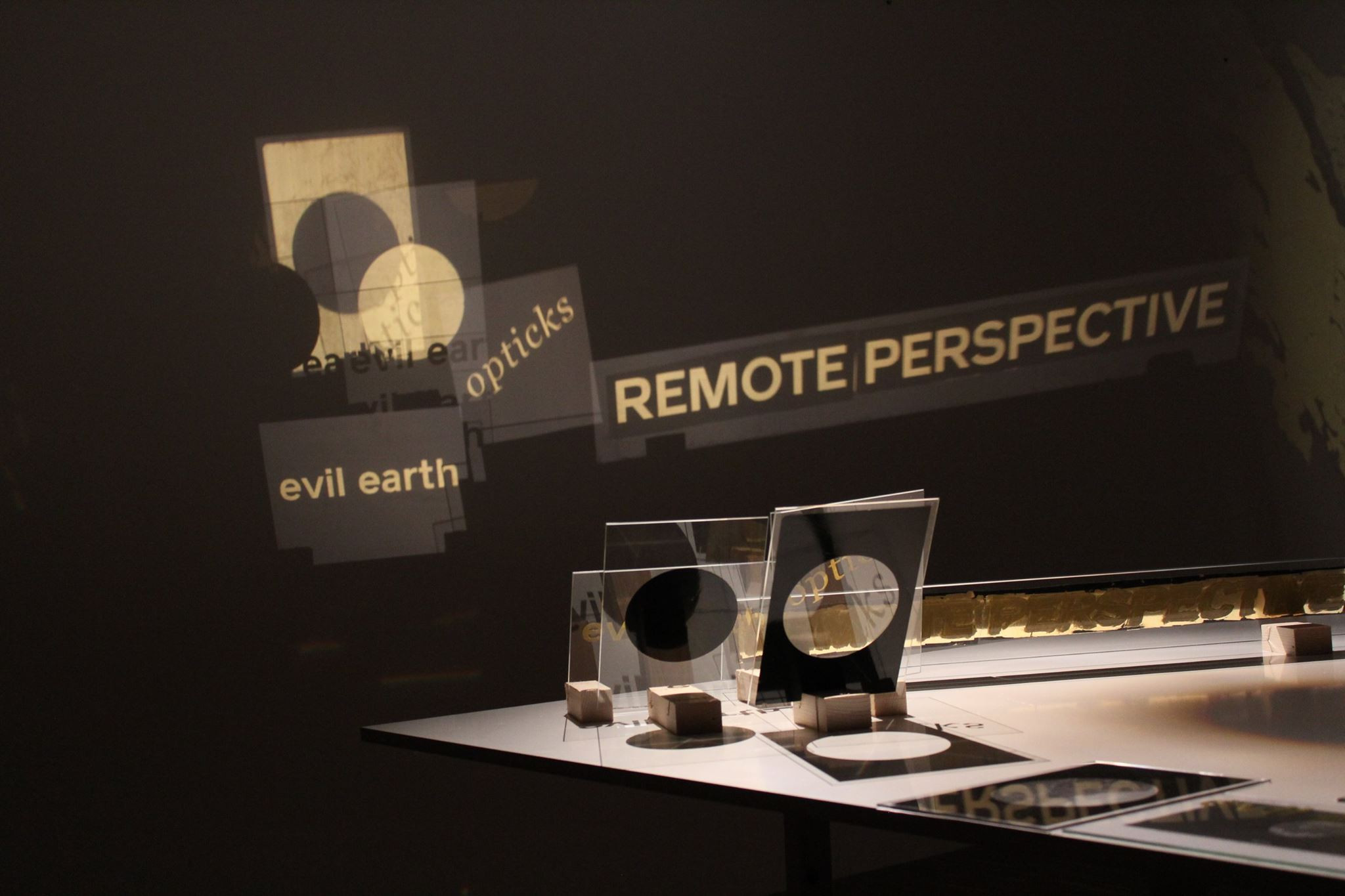 Raščićeva je v razstavnem prostoru oblikovala kompleksno avtopoetično stvaritev, sestavljeno iz heterogenih elementov: videa, objekta ter tipografskih del, ki tvorijo dele modularnega projekta in predstavlja fragment njenega raziskovanja. Stekleni objekt sestoji iz več plasti, na katere je z zlatom naslikala idealizirano gorsko pokrajino. Medtem ko umetnica v liričnem branju ponuja asociacije na legendo o Zlatorogu, kajti gre za upodobitev gora v Julijskih Alpah z razgledom na Triglav, uporabi motiv zavoljo nezmožnosti določanja horizonta – gore zakrivajo obzorje in na ta način destabilizirajo pogled. Stekleni objekt s svojo slojevitostjo opozarja na plasti metapodatkov, hkrati pa sproži prekrivanje podob in posledično popačenje originalne slike. K poigravanju s perspektivo pripomorejo še odsevi besed na stenah razstavnega prostora. Ti dodatno razpršijo pogled. Gre za ključne besede, ki predstavljajo faze njenega razmišljanja in raziskovanja optike brez subjekta ter perceptivnega zasuka z »oddaljeno perspektivo, kot ga na primer omogoča uvajanje drona ter selfie-sticka.