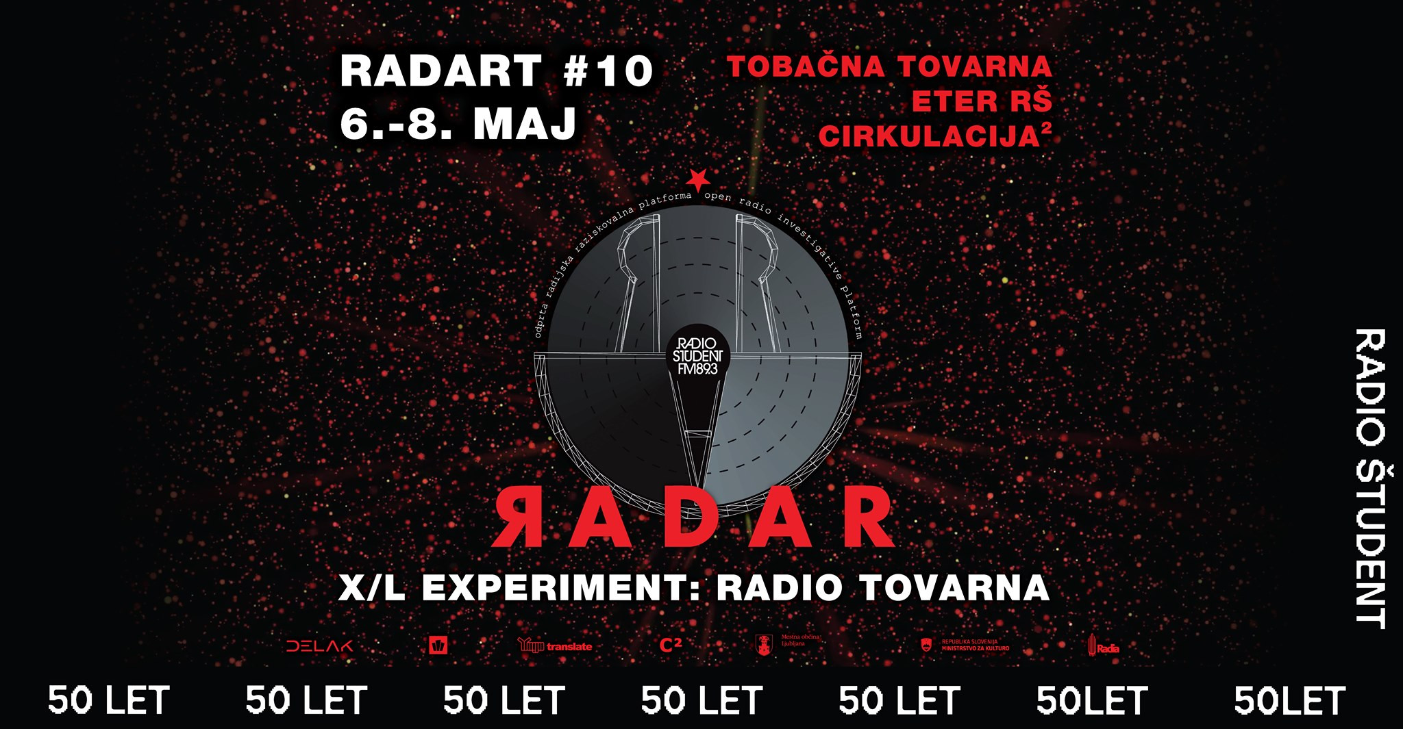In vendarle se vrti! Od ponedeljka do srede, 6., 7. in 8. maja: hrupna tridnevna radio art uvertura v četrtkovo 50. obletnico Radia Študent: RADART #10! Jubilejni, deseti po vrsti performativni umetniško-radijski dogodek Odprte raziskovalne platforme RADAR Radia Študent.