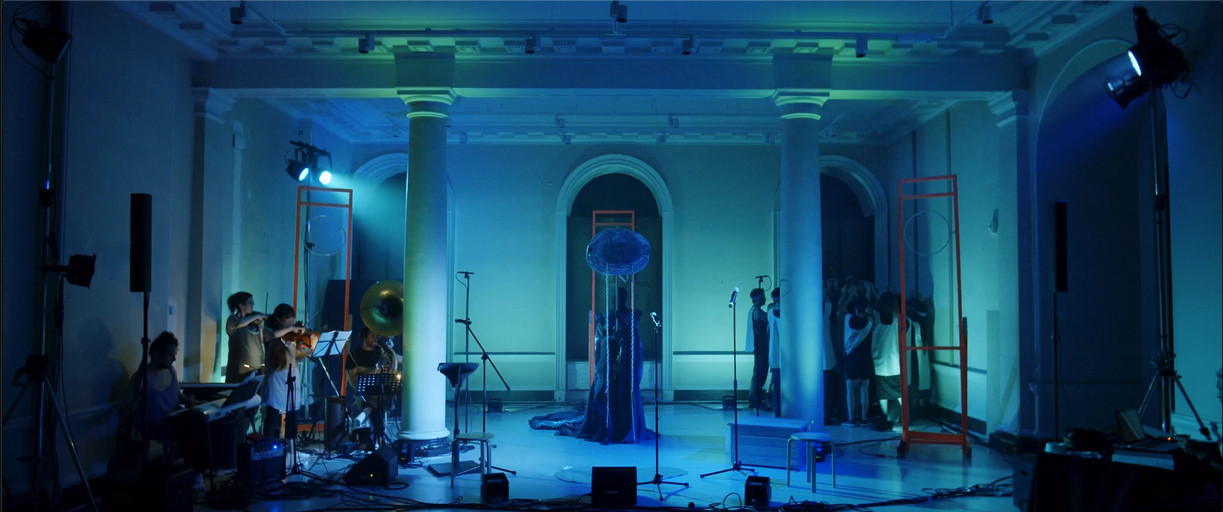 Music by James Oldham. Text by Gary Zhexi Zhang and Klara Kofen. Violin – Chihiro Ono; drums – Cameron Graham; additional performer/band leader – James Oldham; banker/reader – Klara Kofen; banker/Namazu – Gary Zhexi Zhang; Mezzo soprano (Jeremiah) – Suzie Purkis; Baritone (Real Estate Agent of Miami) – Themba Mvula; chorus – Jacob Bolton, Keir Cooper, Gabriella Demczuk, Klara Kofen, Livvy Lynch, Themba Mvula, James Oldham, Suzie Purkis, Gary Zhexi Zhang. Thanks to Resonance Extra, Milo Thesiger-Meacham and Travis Yu.
