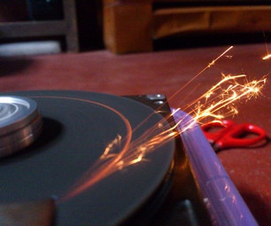 Dr Klangendum tries to open an harddisk with a rectangular grinder and while doing so recording the sound and processing that live. His first attempt fails but the processed sounds form part one. To be continued…