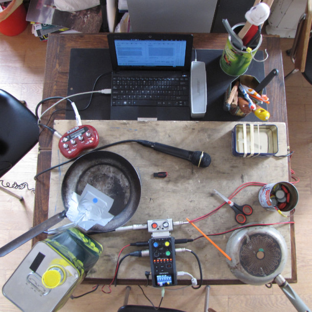 This trio explores the auditory soundscape, transporting this reality into a radiophonic fiction, as a witness in situ and as an agent of this ongoing event. The devices used are similar to the ones used by the activists: metal pans, cast-iron pans, oil cans, cans etc., anything that can make a racket. The objective is to recreate a sound experience for the public who is not on site: the radio audience, a community radio from Brussels, Radio Panik (www.radiopanik.org). The coalition has worked on a device based on kitchen tools and contact microphones creating fine nuances of sound, to demonstrate the significance of the pots and pans, these everyday tools for everyman, showcasing their musical dimension.
