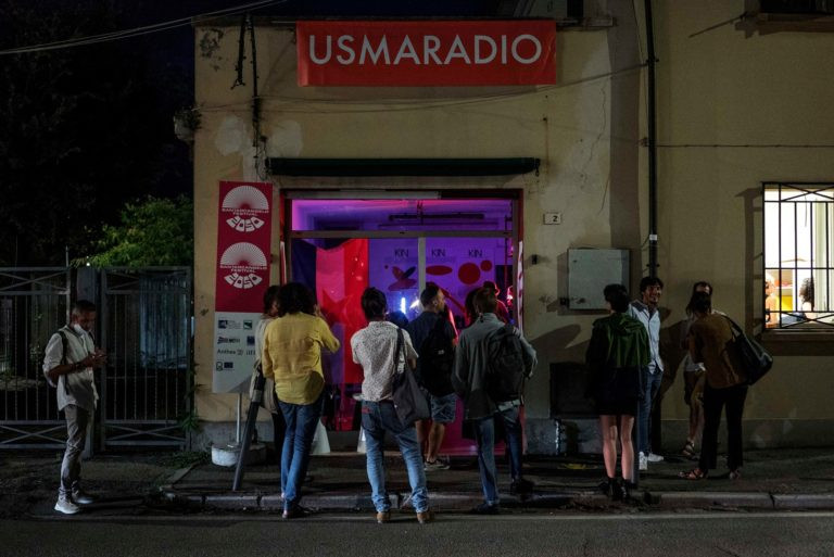 KIN by Usmaradio and Roberto Paci Dalò is a radiophonic city scale performative project that began the week before the performing arts Santarcangelo Festival (Italy) with a workshop session by The School of Radio, then continued throughout the official program with 120 non-stop hours of radio. Santarcangelo has been occupied with the airing of a programme which included artists present at the festival, the citizens themselves and original materials created by the working group. All this has been diffused throughout public and private spaces with listening points (including an outdoor large P.A.), improvisations, electronics, and collaborative radio performances with artists not physically present at the festival. Texts by Franco Bifo Berardi, Paolo Fabbri, Gabriele Frasca and Donna Haraway.