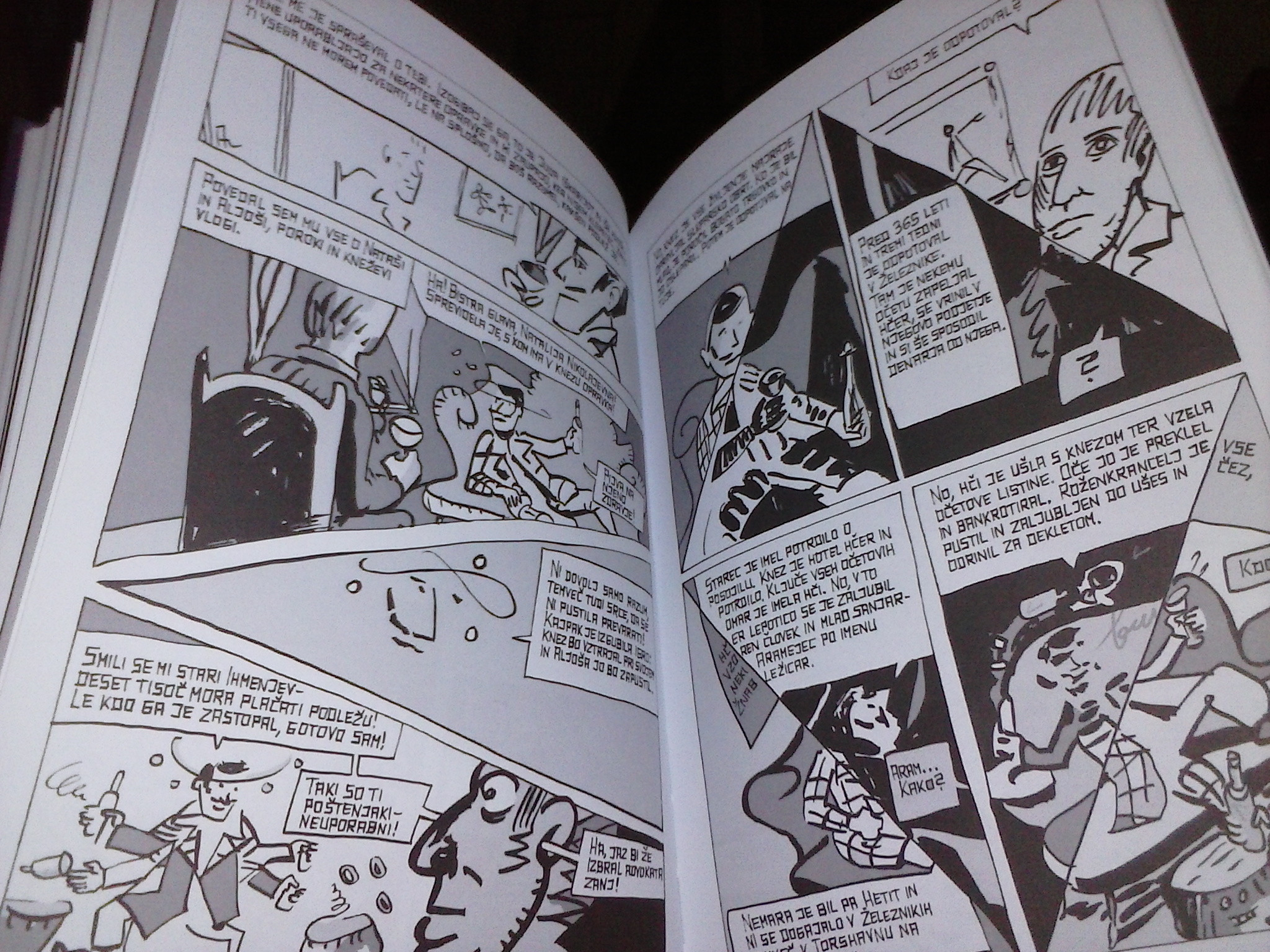 Če star rek pravi, da slika pove 1000 besed, si upamo trditi, da je to še vedno kakšnih 500 manj, kot bi jih povedal Dostojevski, ki ga poznamo tudi po natančnih opisih okolice dogajanja. Bertoncelj pa je šel v drugo skrajnost in okolice skorajda ni upodobil. Celoten fokus je usmerjen na dolge monologe in zapletene dialoge med protagonisti. Kje, kam in od kod se liki premikajo, pa je ostalo v nekakšni.. ..sivi coni.