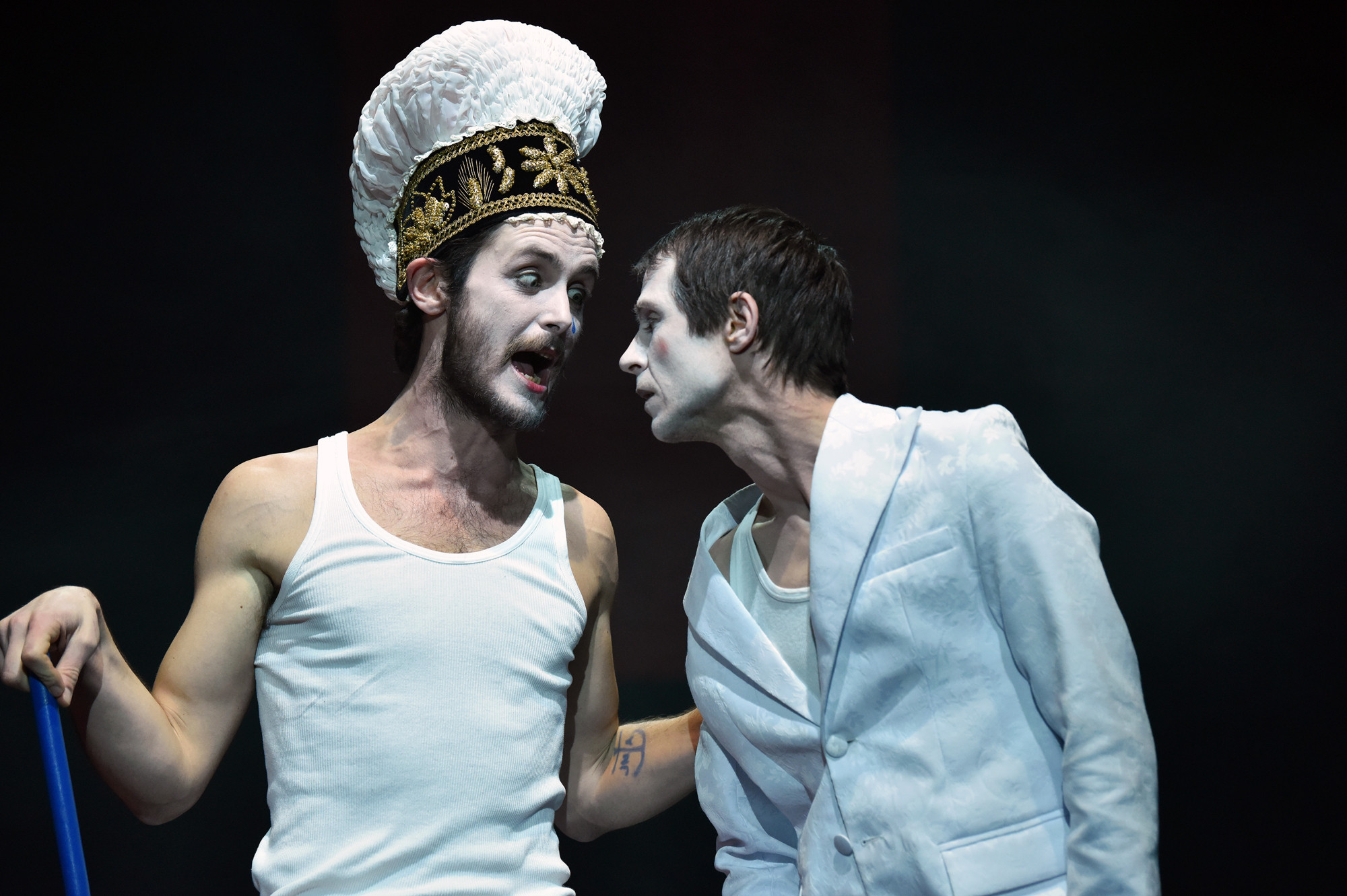 Mladi nastopajoči pokažejo pestro paleto likov, ki jih izoblikujejo na odru, in mojstrsko preskakujejo iz enega v drugega, končajo pa spet kot ljudje z imeni Peter, Jure, Matija, Urška in Žiga. Spored šansonov priredb in avtorskih pesmi vtaknejo v prave niše predstave, da jih ni ne preveč ne premalo. Obregnemo se lahko le ob pijanca, ki niti ne deluje pijan, še manj opazen in je le background muzika za ostale.