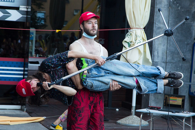 Ko je Gledališče Ane Monro s predstavo Ana pod oknom med pomladno karantensko izolacijo pripeljalo ulično gledališče na blokovska dvorišča pod balkone gledalcev, je bil odziv dovolj spodbuden, da se je ekipa po tem formatu zgledovala tudi pri julijski prvi etapi festivala Ana Desetnica 2020 v Ljubljani. V iskanju neposrednega stika s publiko se je festival, ki smo ga recenzirali prejšnji teden, vsak dan selil od ene do druge ljubljanske soseske. Z metaforičnim vstopom v dnevno sobo prebivalcev Poljan, BS3-ja, Celovških dvorov in Plave lagune pa je dogajanje pridobilo izrazito družinsko noto, ki so jo še dodatno poudarili: štant s palačinkami, prenosna igrala in plesna delavnica za razposajeno mladež. Na prvi pogled je urbano-alternativni Žonglerski koncert skupine Mismo Nismo, ki jo naši poslušalci nemara poznajo po oddaji Jutranji padec iz sezone 2018-2019 [link], štrlel ven iz tega ozračja podobno kot Avtonomna tovarna Rog iz Jankovićevega turističnega centra Ljubljane. Kot dobrodošlo dopolnilo, torej.