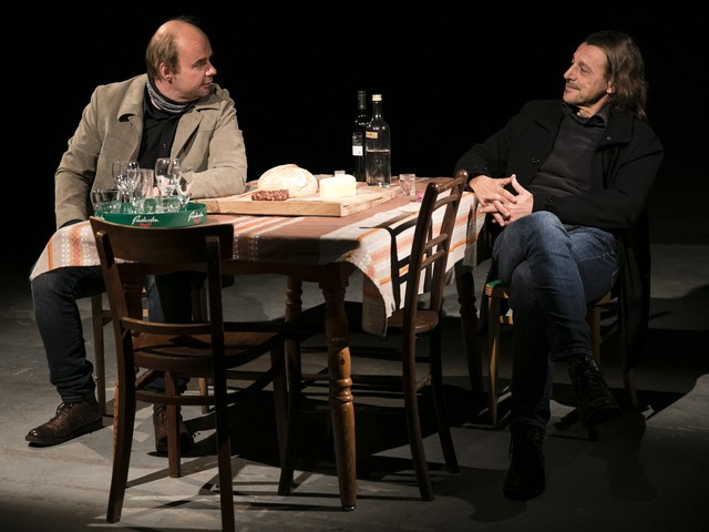 Pri tem ne gre le za klišejsko postmodernistično mežikanje gledalcu in reference na zunanjost onkraj predstave. Recerju in Zorcu uspe resnično zanimiva in morda skorajda protislovna združitev resničnosti in zgodbe. Telesi igralcev sta funkcionalni v najbolj vsakdanjem smislu in obenem globoko izrazni. Stol je obenem del scenografije in pač … stol. V tem smislu sta najbolj zanimivi hrana, ki jo med predstavo igralca režeta, in pijača, ki jo pijeta ー na koncu pa ju ponudita občinstvu. Kot da bi hotela reči: »Res je, to vino je bilo rekvizit v predstavi; ampak tudi pijete ga lahko.«