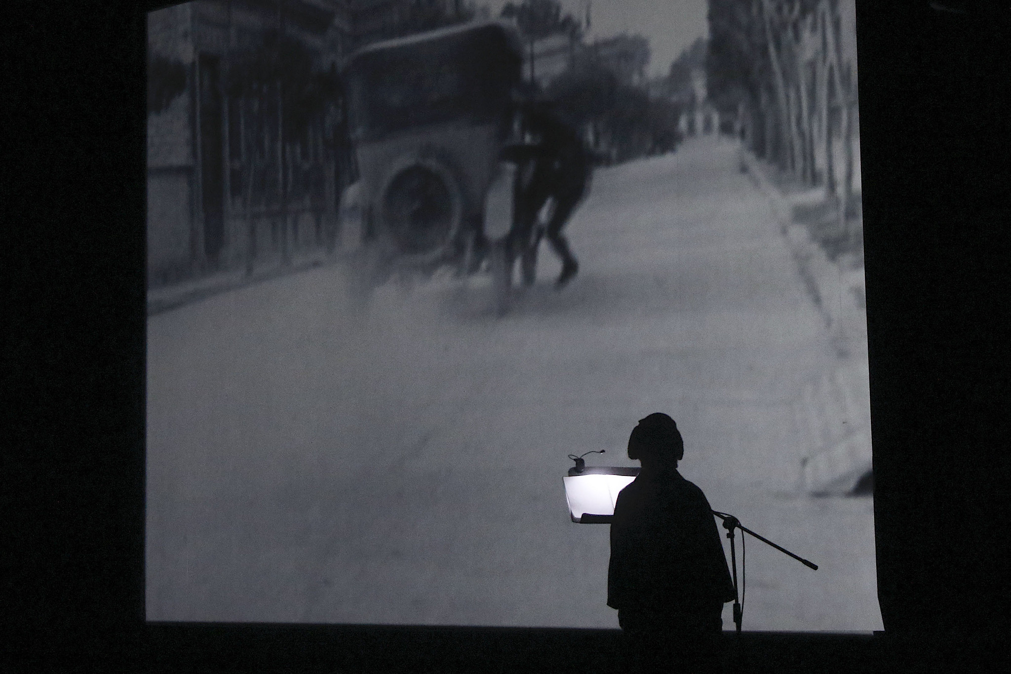A vrnimo se k tišini. Ta čista tišina namreč ni čista. Morda slišim svoje dihanje, nekomu zraven mene kruli v želodcu, drgnjenje hlač ob sedeže, ko se nekdo preseda. V Slovenski kinoteki je nekaj časa gospod v zadnji vrsti redno kinkal na nemih projekcijah, tako da je ritem filma podvajal ritem blagega smrčanja. A večino občinstva tišina v dvorani priklene na sedeže. Omeji naše gibanje, z ničemer nočemo zmotiti tišine in pritegniti pozornosti drugih na svojo nepozornost. Ta izkušnja je nenavadna: najprej slišimo sebe in ostale gledalce, svoje dihanje, premikanje in pokašljevanje. Obenem pa slišimo projektor, konstantno drdranje, ki vleče film naprej. Kot da bi nenadoma povsem očitni postali dejstvi gledanja in projekcije. Da je film narejen zame, za moj pogled, in da ga je obenem treba šele narediti razberljivega, da ga vidnega naredi šele projektor.