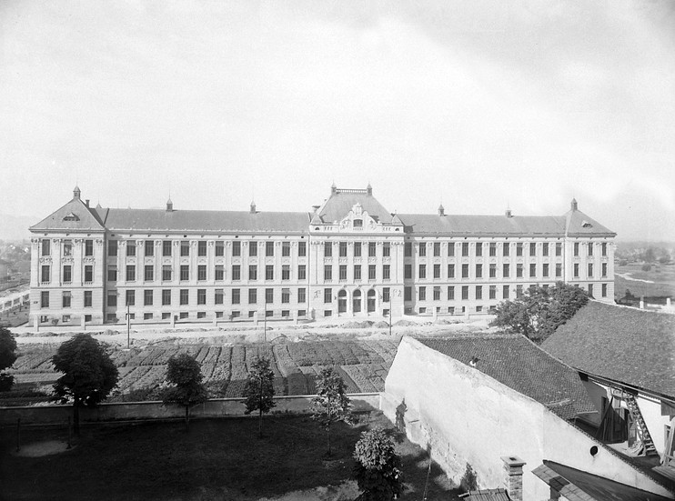 Slika: Šolski center Ljubljana (Aškerčeva gimnazija; kjer so vrtički, danes stoji Filozofska fakulteta)
